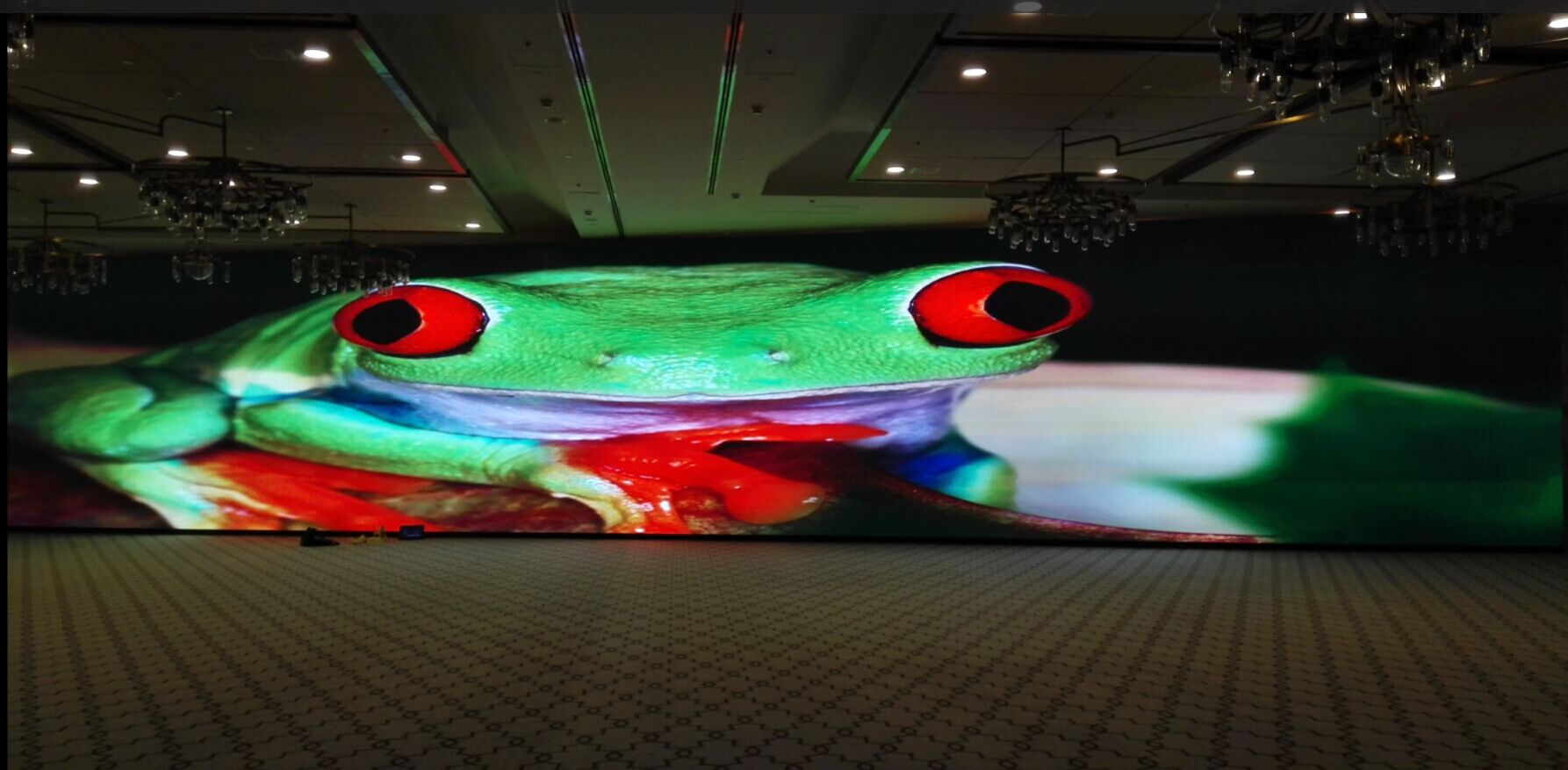 宴會廳的P3高清顯示屏,是整個大廳中唯一展示區域,也是與會客人焦點所在。莫斯科客戶對該項目相當重視,要求也十分嚴格。客戶要求小間距屏實現輸出畫面清晰流暢,點對點同步顯示,色彩高保真等。這就對LED顯示屏的顯示效果以及控制系統的穩定性有著極高的要求。